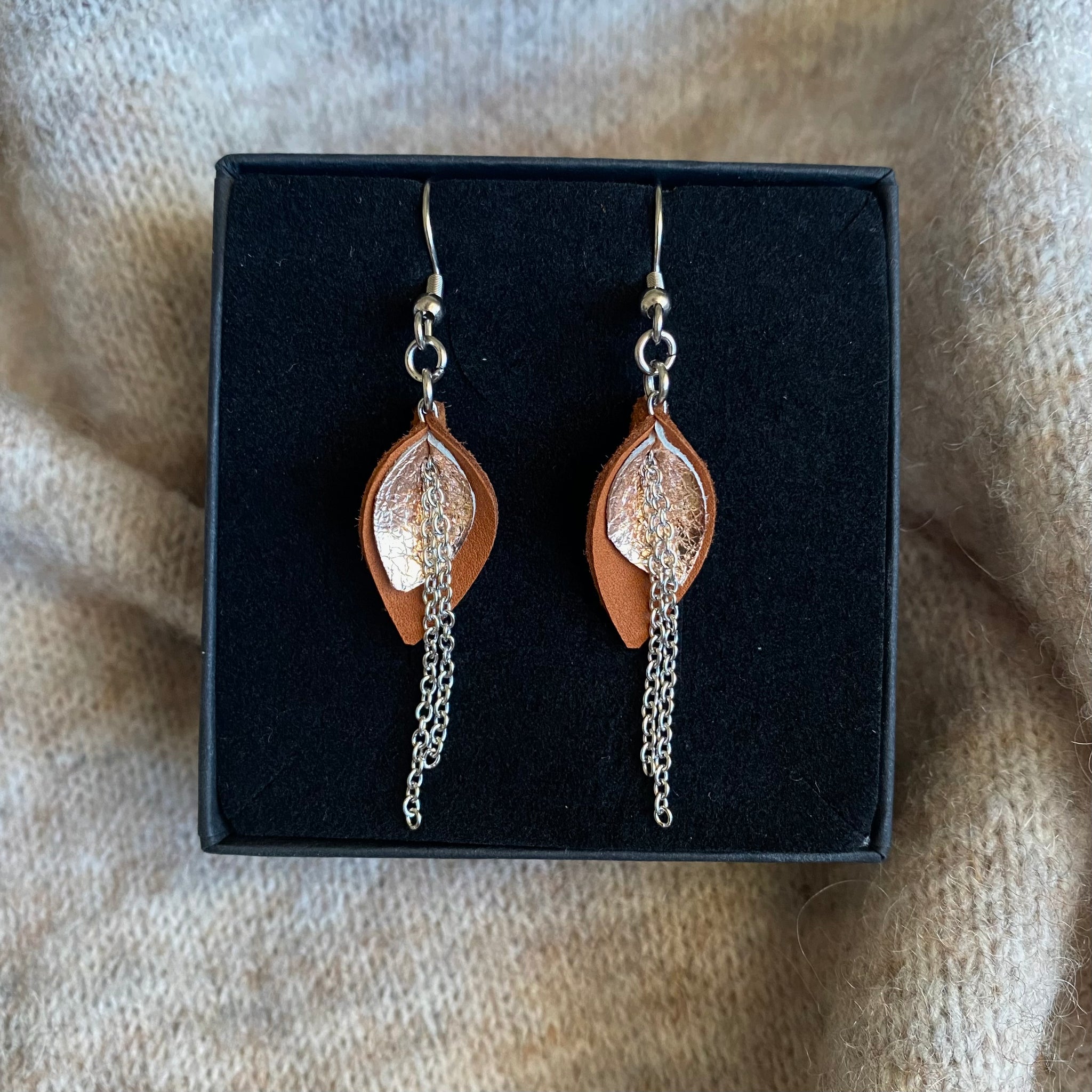 Bloom -malliston korvakorut koossa mini, joiden väriyhdistelmä on mokka ja ruusukulta.