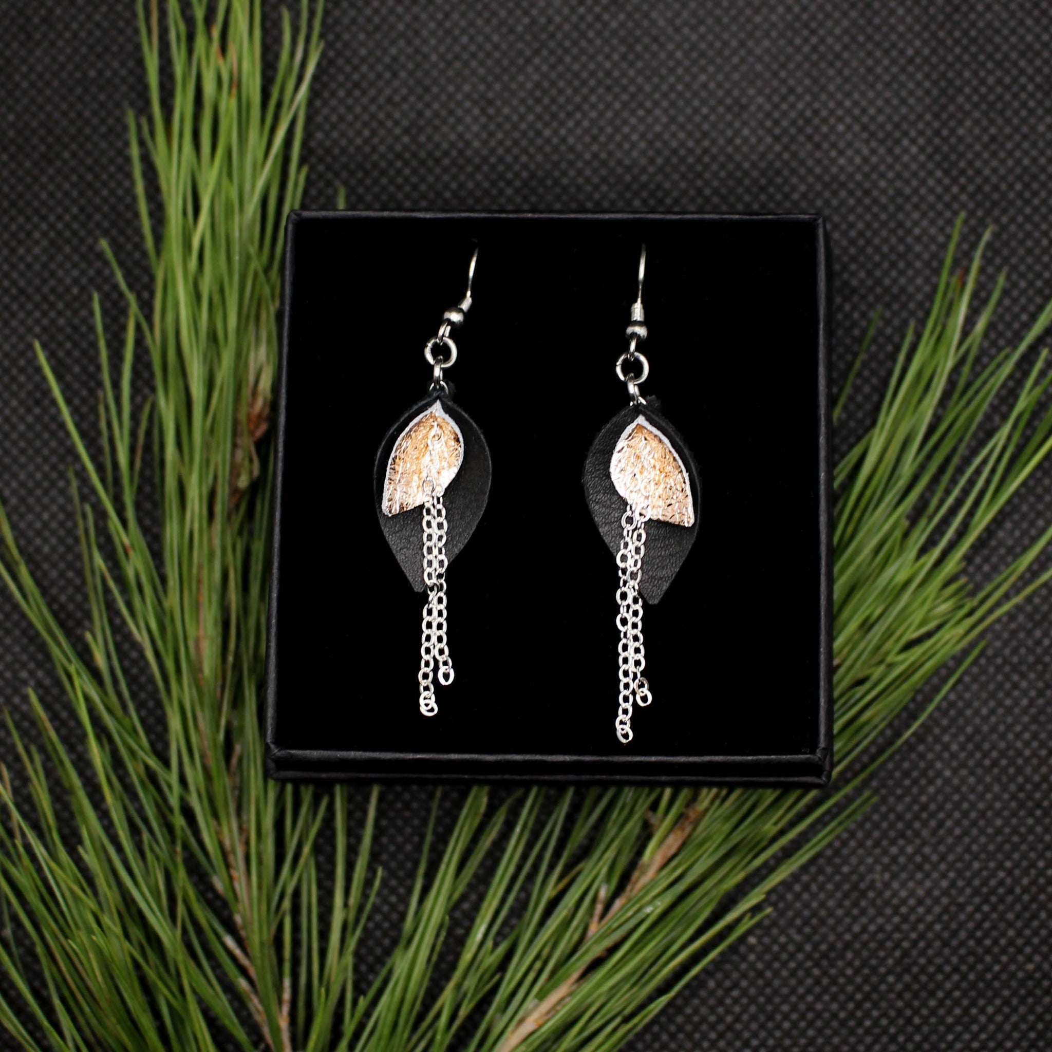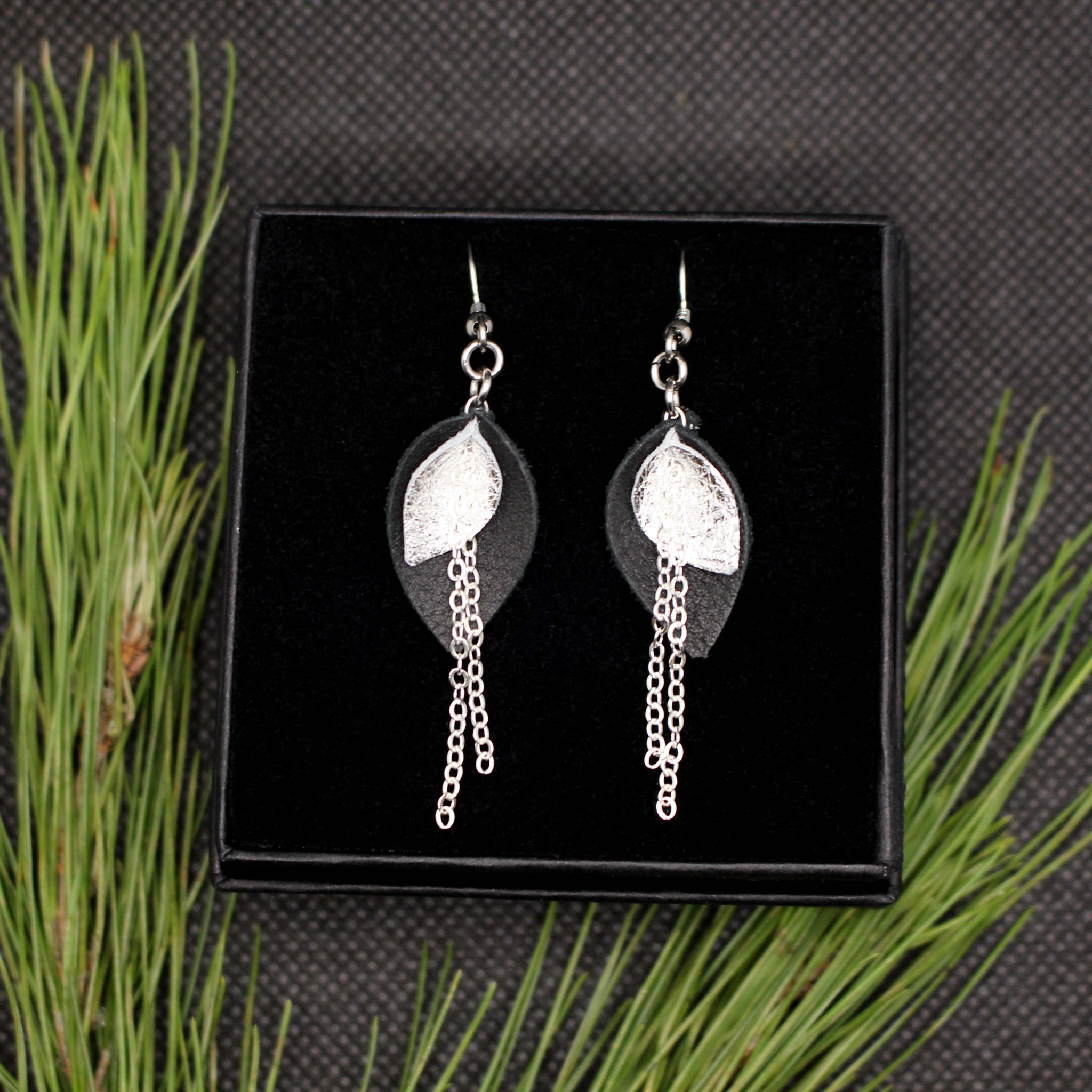 Bloom -malliston korvakorut koossa mini, joiden väriyhdistelmä on musta ja hopea.