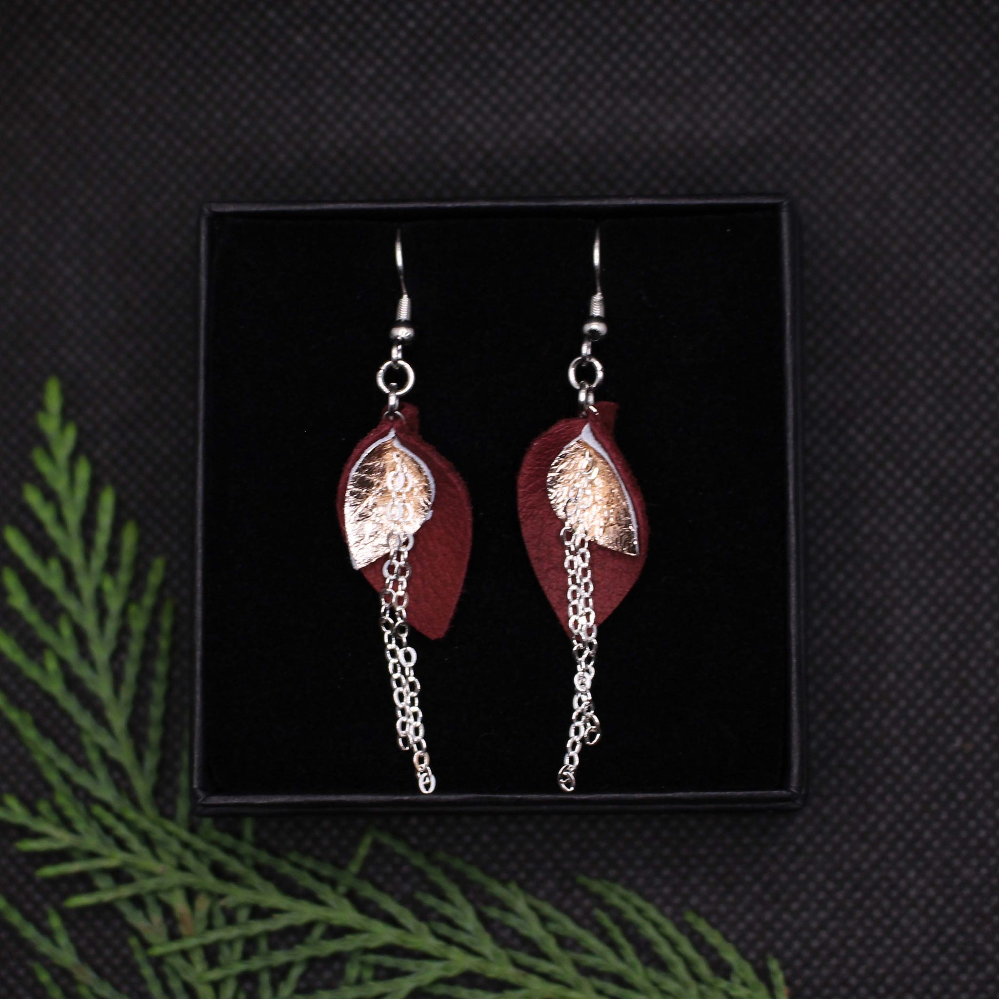 Bloom -malliston korvakorut koossa mini, joiden väriyhdistelmä on viininpunainen ja ruusukulta.