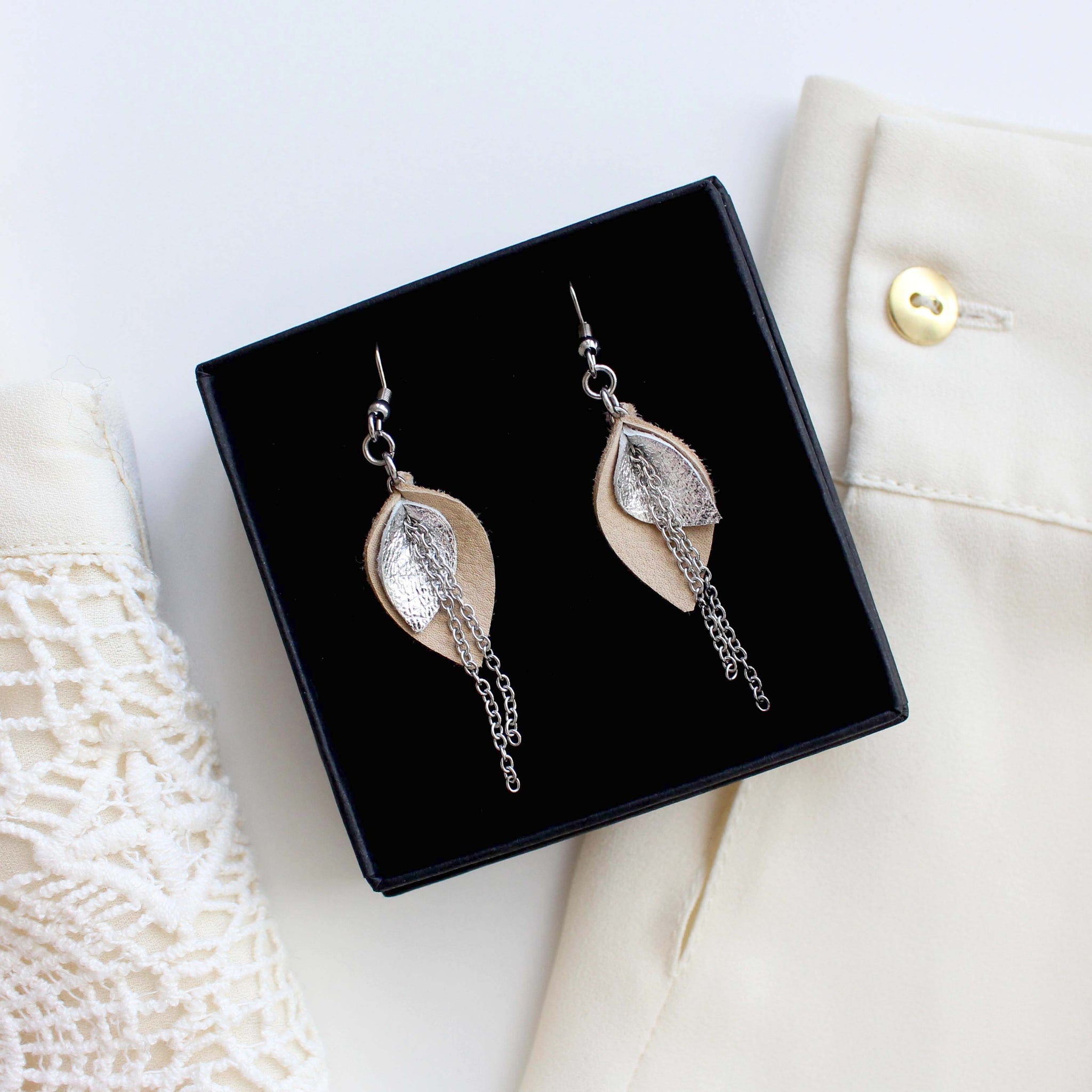 Bloom -malliston korvakorut koossa mini, joiden väriyhdistelmä on beige ja hopea.