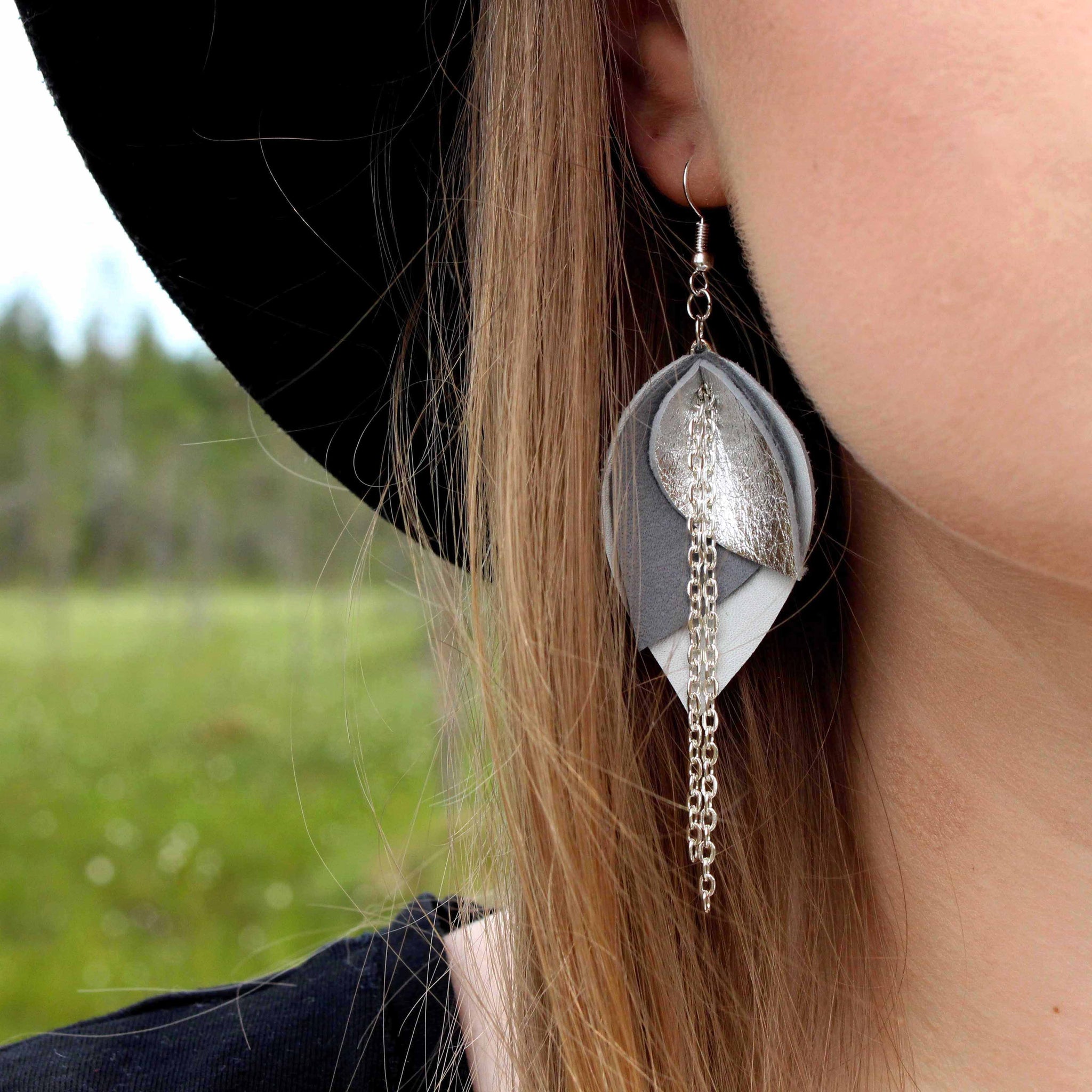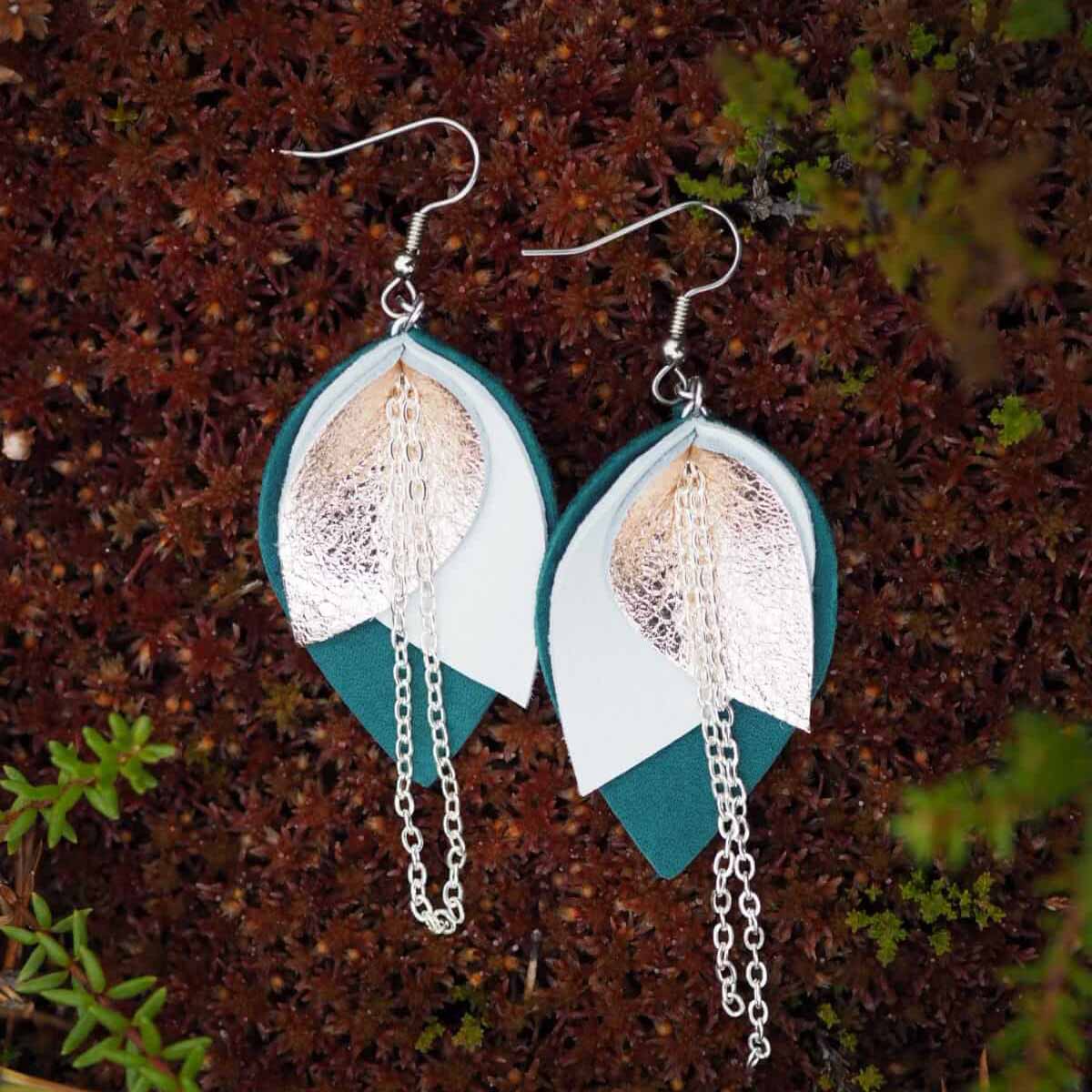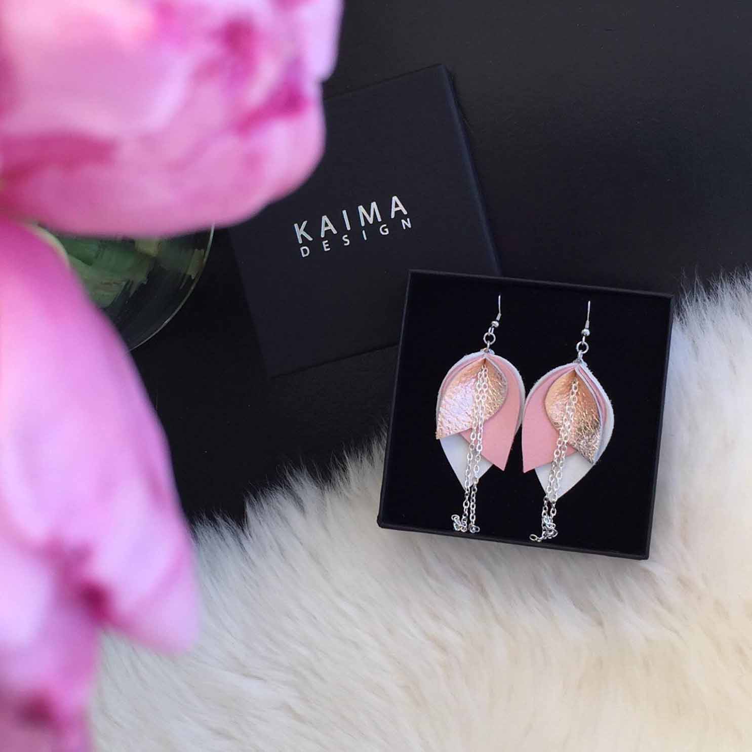 Iso Bloom-korvakoru koostuu kolmesta väristä: kahdesta pääväristä ja metallipintaisesta nahkasta, joka on joko hopea tai ruusukulta.