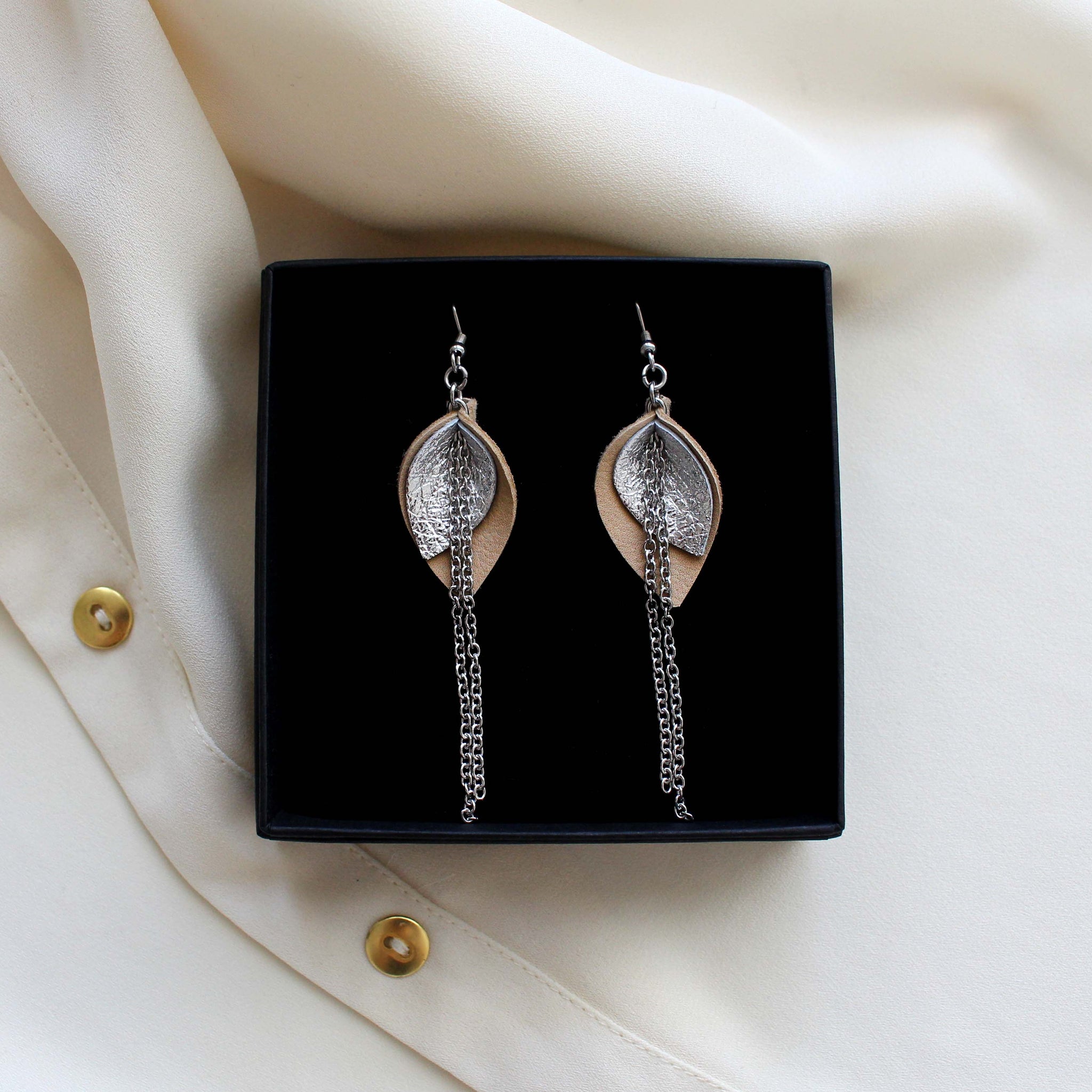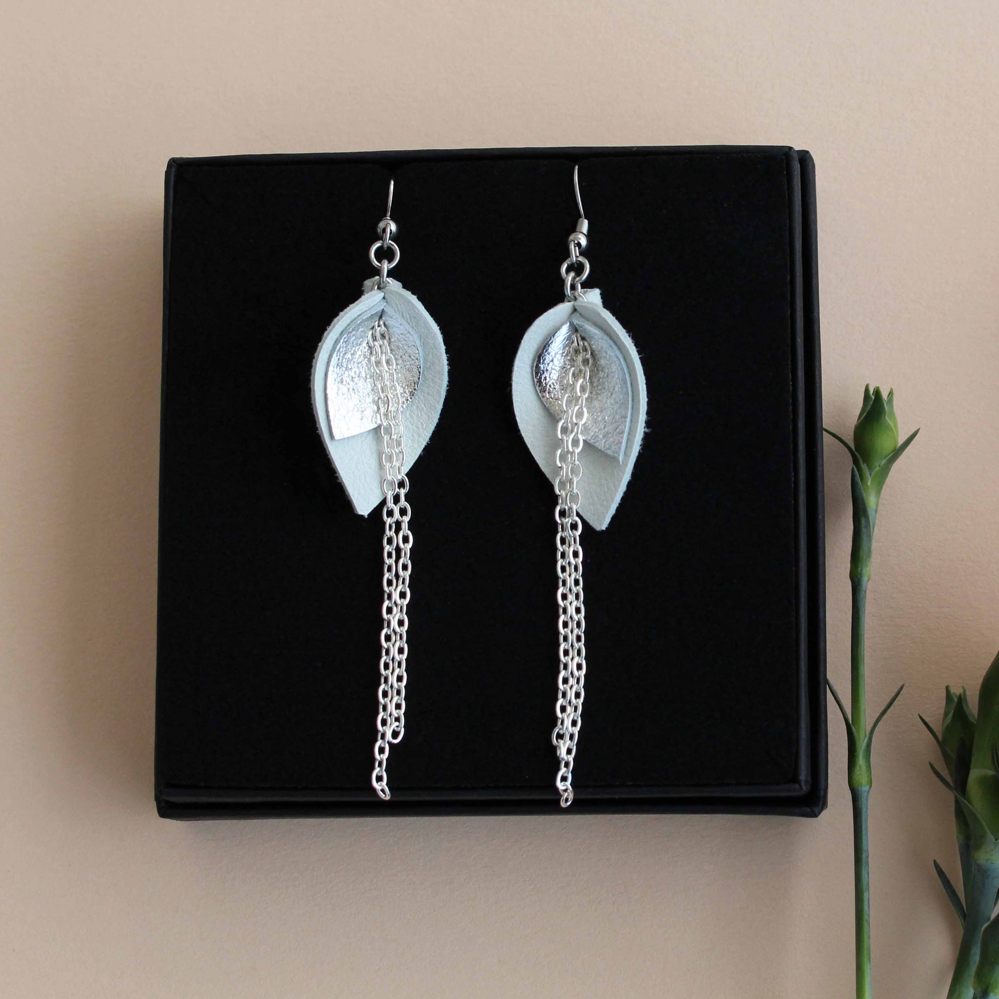 Keskikokoinen Bloom-korvakoru koostuu kahdesta väristä: pääväristä ja metallipintaisesta nahkasta, joka on joko hopea tai ruusukulta.