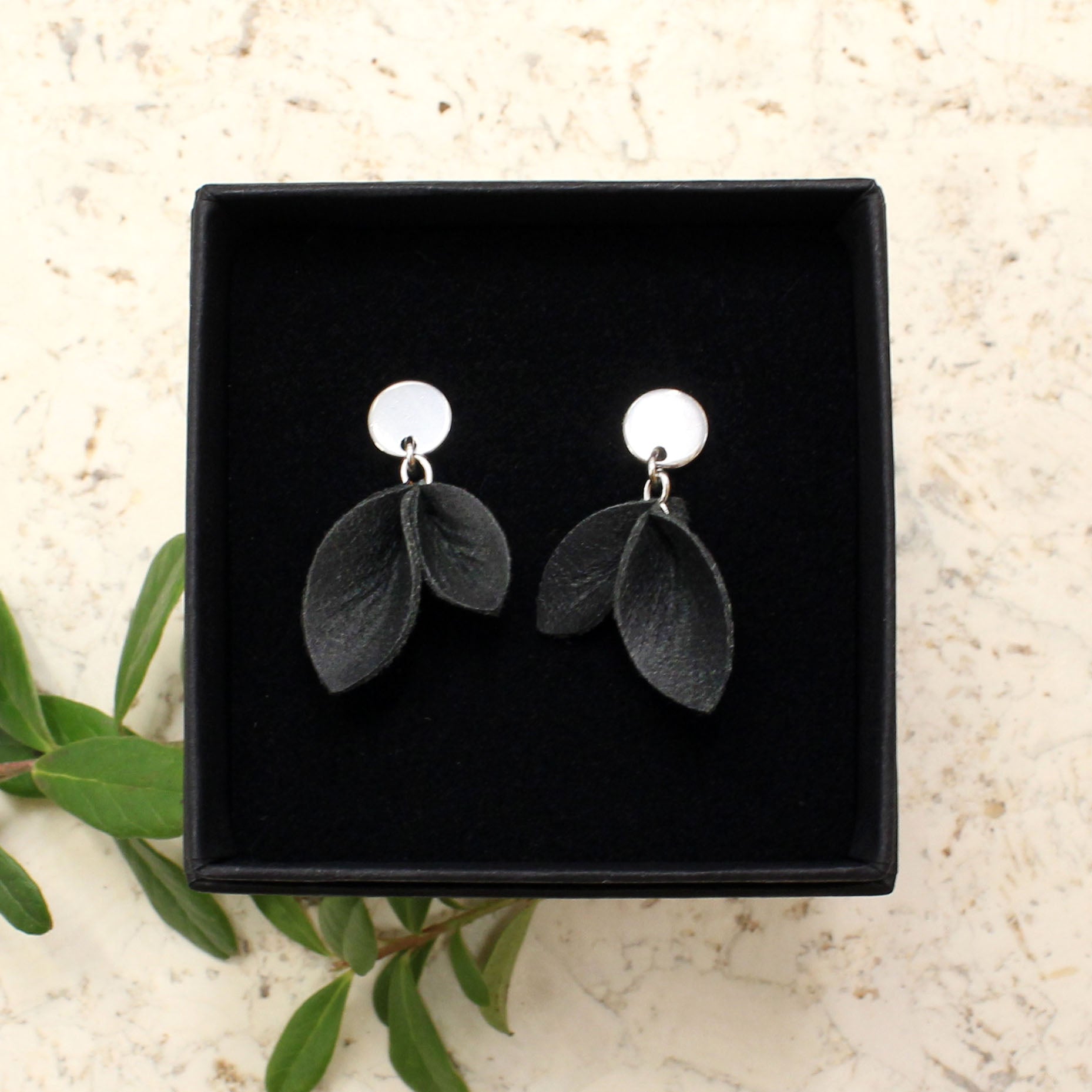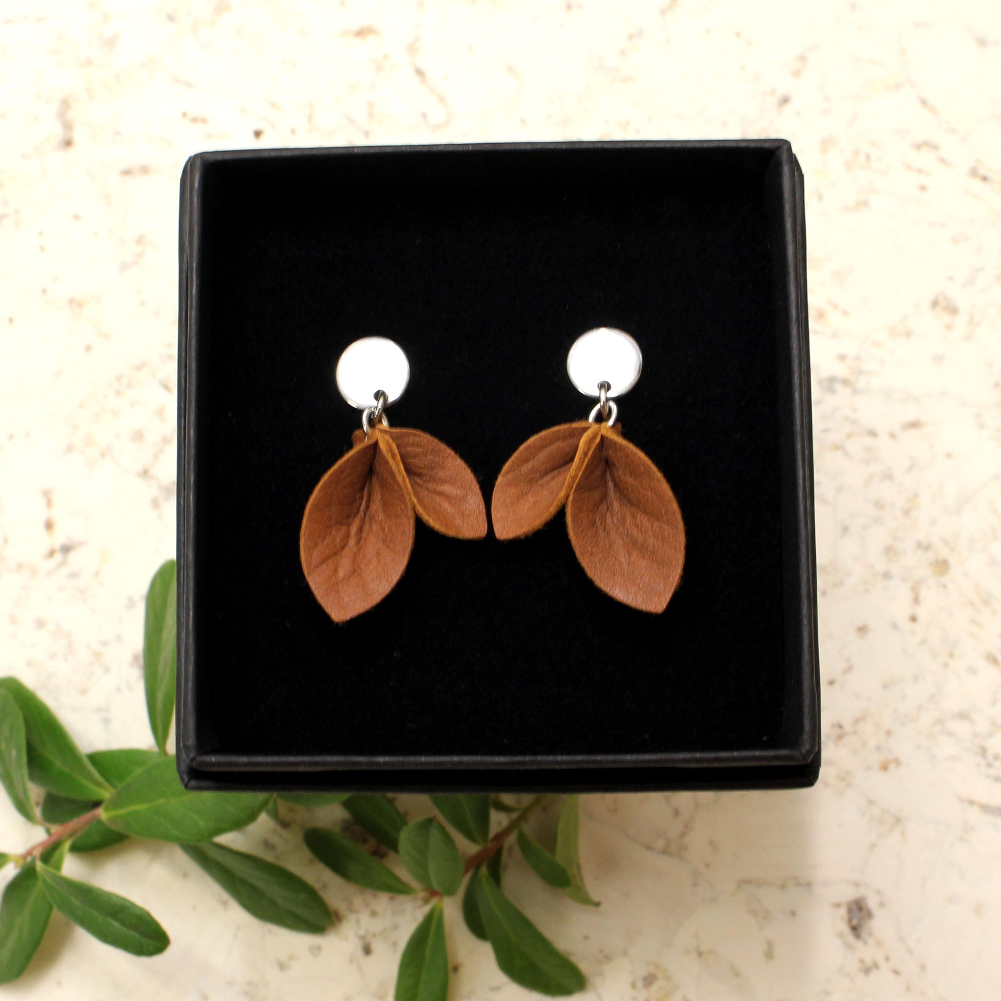 Materiaaleina kasviparkittu paksumpi poronnahka ja allergisoimaton ruostumaton teräs. Korun koko on 2x3 cm. Poronnahka on paksumpaa ja sen käsittelyn myötä siinä näkyy enemmän elämän jälki sekä luonnollinen materiaalin pinnan vaihtelu. Huomioithan, että tuotteiden pinta voi tämän vuoksi erota hiukan toisistaan antaen jokaiseen samalla uniikin säväyksen.